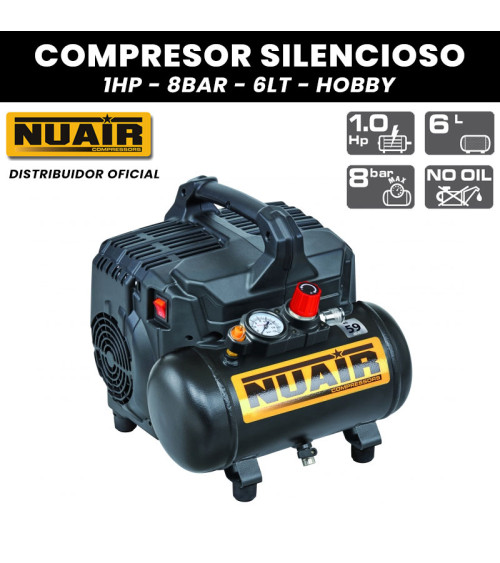 Compresor silencioso 6lt 1,0HP 8 Bar Nuair