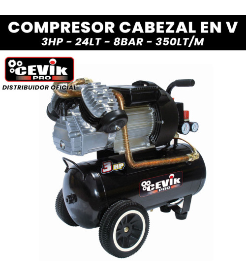 Compresor cabezal en V 24lt 2,5HP 9 Bar Cevik Pro