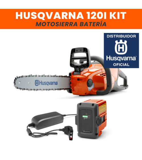 ¡En oferta! Vista rápida Añadir al carrito Kit batería 120i Motosierra 120i Batería y Cargador Husqvarna Precio 399,00 € Kit de motosierra 120i a batería con cargador (QC80) y batería (Bli20) Husqvarna: Barra laminada 12"" / 30 cm y cadena cortada H38 45 eslabones...