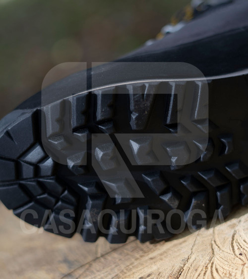 - Parte superior de flor 2,6 mm hidrófuga/caucho. Se trata de la parte exterior del cuero vacuno, que es extremadamente resistente y ofrece una alta durabilidad. El cuero, en su parte superior, tiene la característica de que sus fibras están unidas de forma muy fuerte, lo que confiere a la Piel Flor una resistencia al agua y una consistencia muy altas. La Piel Flor de Bestard es sometida a un tratamiento especial de hidrofugación, que combinado con el forro Gore-Tex® ofrece una impermeabilización extrema manteniendo sus propiedades de transpiración.