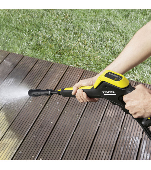 - Pistola Power Control y lanzas pulverizadoras con Quick Connect: El ajuste óptimo para cada superficie. Tres niveles de presión y un nivel de detergente. Monitorización completa: el display manual muestra los ajustes realizados. Conexión Quick Connect para la fácil fijación de manguera de alta presión y accesorios.