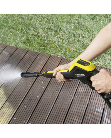 La hidrolimpiadora K 4 Power Control hace que limpiar cualquier superficie con la presión adecuada sea más que sencillo. Gracias a la App Home & Garden de Kärcher resulta muy práctico elegir la presión adecuada ya que el usuario va a recibir prácticos y útiles consejos de trabajo dependiendo de la superficie o artículo que necesite limpiar. La App incluye muchas otras funciones como instrucciones de montaje y indicaciones sobre el mantenimiento y la conservación del aparato. El cliente también va a poder acceder a una base de datos donde localizar respuestas a las preguntas más frecuentes sobre uso, mantenimiento y posibles incidencias. Una vez elegido el nivel de presión adecuado, éste se ajusta fácilmente girando la lanza pulverizadora pudiendose comprobar en la pistola G 160 Q Power Control. La K 4 Power Control también destaca por el sistema de detergente Plug ’n’ Clean de Kärcher que permite cambiar sin esfuerzo las diferentes botellas de detergente. Gracias al asa regulable en altura, se puede transportar el equipo cómodamente y almacenarlo de forma compacta. La posición de estacionamiento permite tener los accesorios siempre a mano.