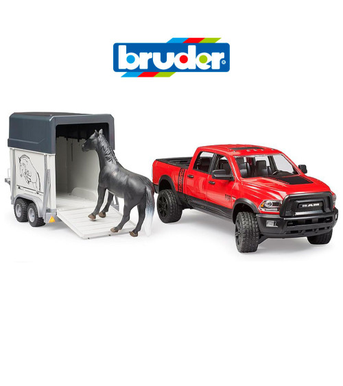 - Contenido del paquete: Pickup RAM 2500 Power Wagon, remolque para caballos, 1 caballo