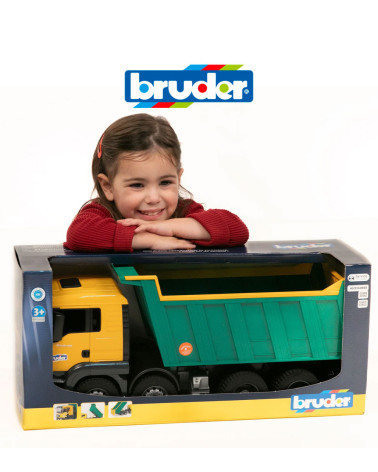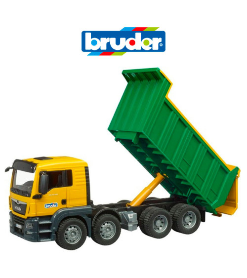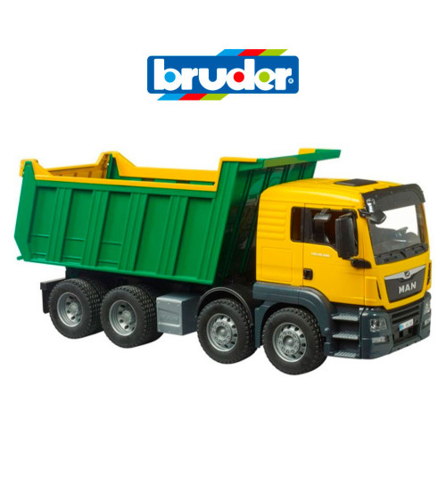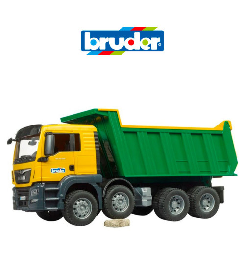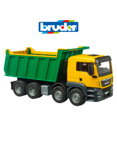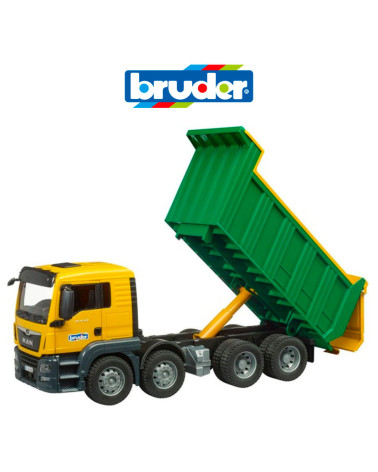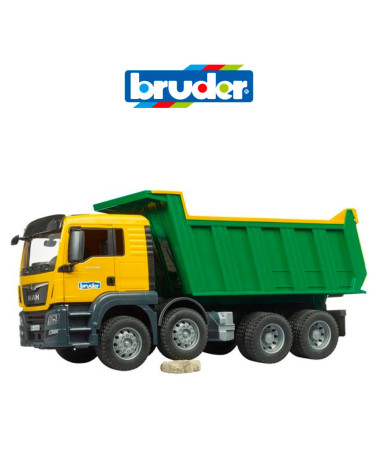 El camión volquete MAN TGS de Bruder es un vehículo resistente y muy realista con el que los peques podrán transportar arena, tierra o cualquier material de obra durante el juego. Su cubeta basculante y el portón trasero abatible hacen que cargar y descargar sea muy sencillo, igual que en los camiones de verdad. Con sus puertas funcionales y diseño robusto, es un regalo para niño o niña ideal para crear horas de juego en el exterior o en casa.