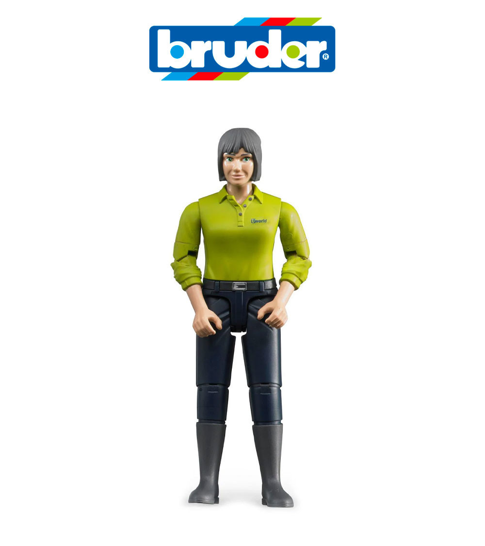 La figura de mujer con pantalón azul oscuro de Bruder es un complemento perfecto para ampliar cualquier mundo de juego bworld. Gracias a su diseño articulado y su escala 1:16, es compatible con todos los vehículos y escenarios de la marca, permitiendo recrear escenas cotidianas, agrícolas, industriales o urbanas con gran realismo.