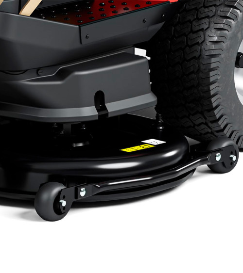 La plataforma de corte estampada de 122 cm permite cubrir más terreno en menos tiempo. Incorpora dos cuchillas y un sistema de corte 2 en 1 con descarga trasera y opción mulching, ideal para mantener el césped saludable y nutrido sin necesidad de recoger los restos.