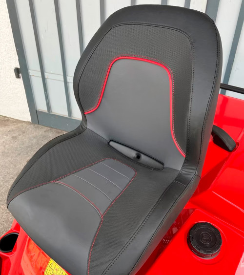 Cuenta con una transmisión hidrostática TurffTorq K62, que ofrece una conducción suave, sin tirones, y con bloqueo diferencial, lo que mejora el agarre en zonas húmedas o en terrenos inclinados. El embrague eléctrico de cuchillas, los faros LED y el puente delantero de hierro fundido refuerzan su fiabilidad y comodidad, incluso en jornadas de trabajo largas. Con un recogedor de 380 litros y una capacidad de combustible de 12 litros, puedes trabajar durante mucho más tiempo sin interrupciones.