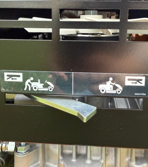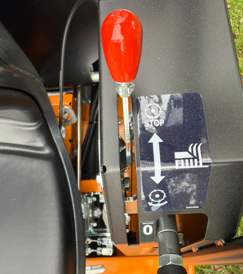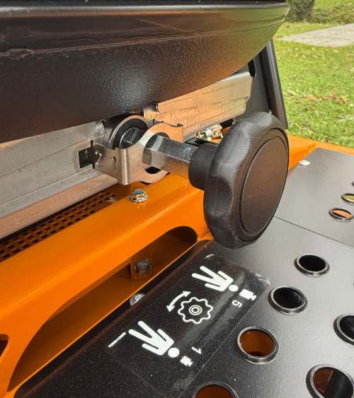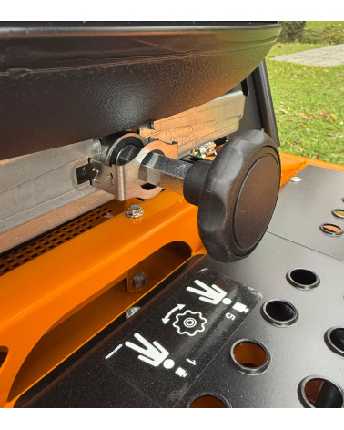 La velocidad se ajusta de manera progresiva y sencilla a cada tipo de terreno gracias a su transmisión hidrostática, que además integra el freno de estacionamiento en la propia palanca de mando.