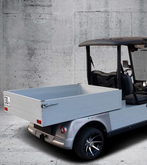 Es un vehículo eléctrico eficiente, silencioso y sin emisiones, perfecto para el transporte interno, reparto o mantenimiento dentro de recintos profesionales o entornos urbanos.